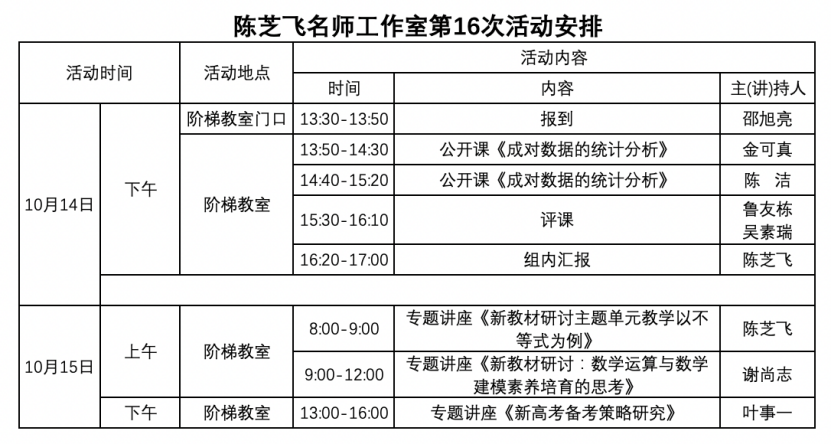 关于举行温州市陈芝飞“名师送教”工作室第7次活动的通知
